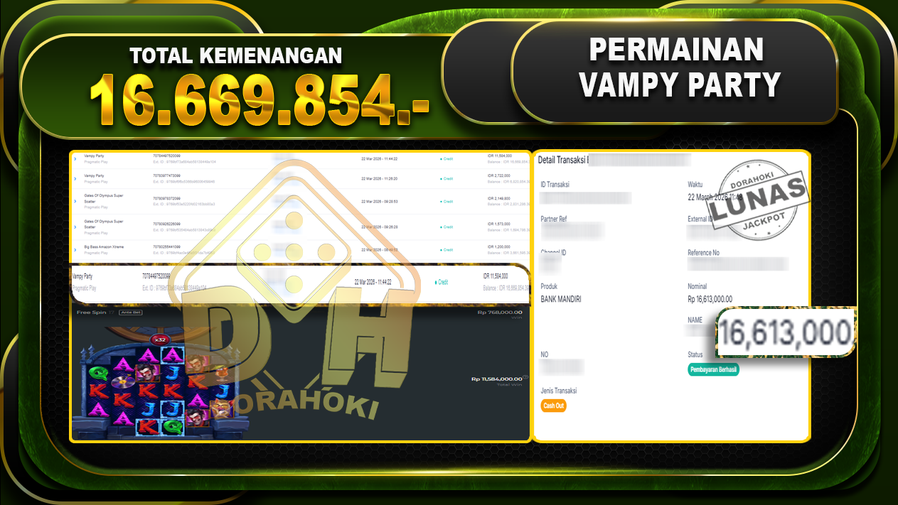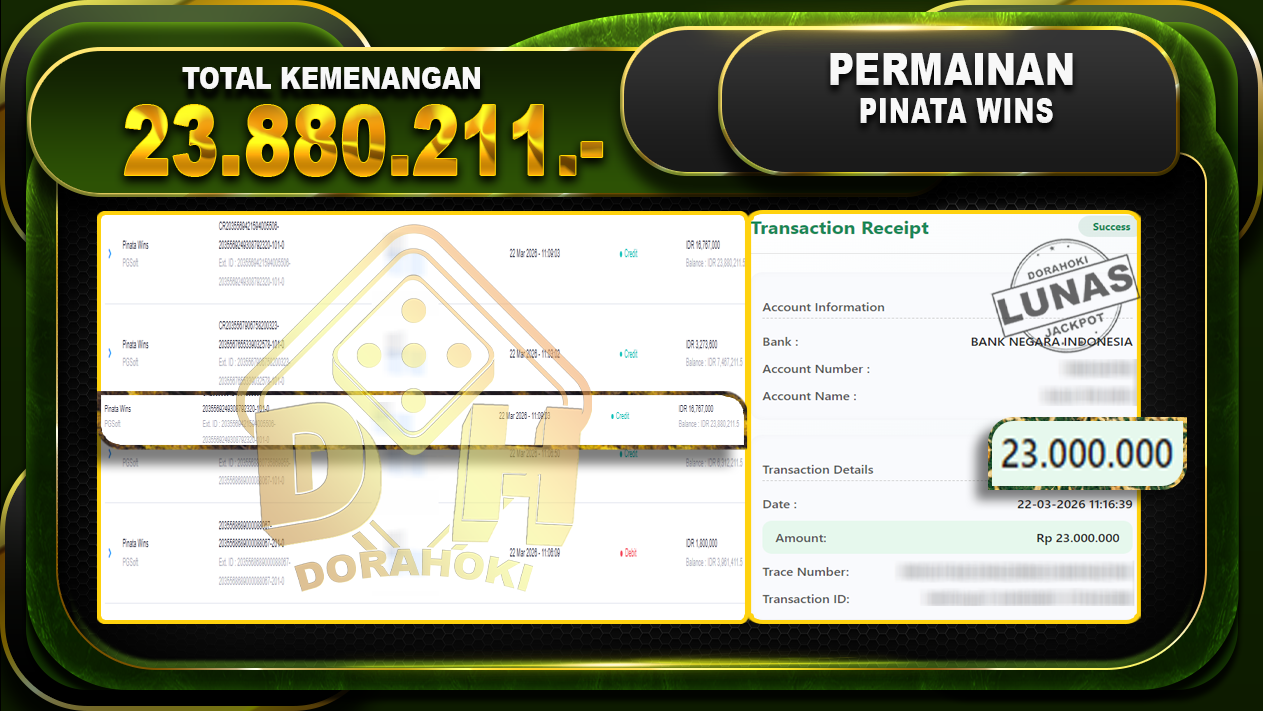 Bukti JP Pinata Wins – Selamat Kepada User ID : Sosxxx atas kemenangan Pinata Wins Dengan Nominal Sebesar Rp 23.880.211,- . Yang pasti nya langsung LUNAS Sesuai Bukti.