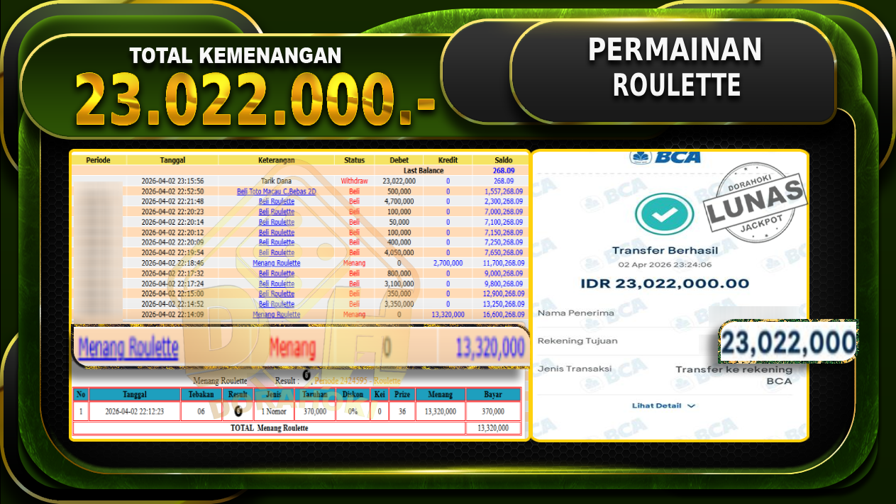 Bukti JP PP LIVE MEGA ROULETTE – Yang kami berikan ini sah dan real tanpa di rekayasa bosku dan hanya bertujuan untuk meningkatkan kepercayaan member kami dan memberikan kenyamanan saat bermain jadi bosku tidak perlu khawatir MENANG BERAPAPUN PASTI KAMI BAYAR LUNAS!!