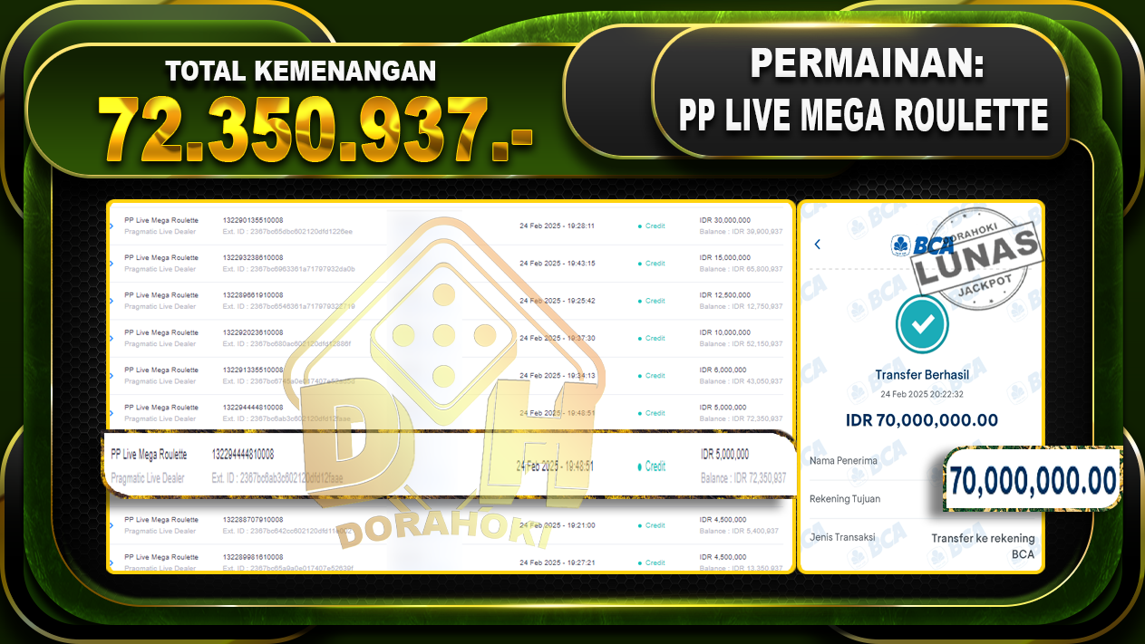 PP LIVE MEGA ROULETTE – DORAHOKI 24 Feb 2025