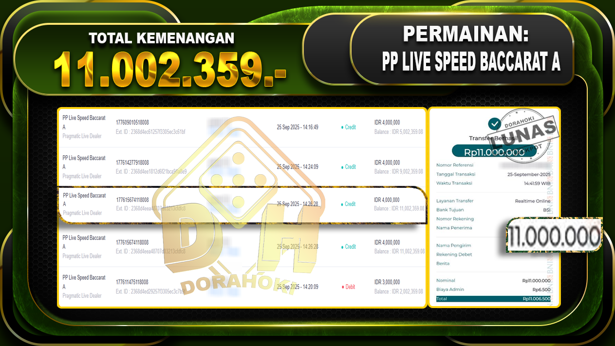 Bukti JP PP Live Speed Baccarat A – ucapkan selamat kepada user id praxxxx atas kemenangan di PP Live Speed Baccarat A dengan total kemenangan Rp.11.002.359- . Yang pasti nya langsung LUNAS sesuai bukti ya bosku. Dorahoki nih bosku berapapun akan tetap kami bayar lunas ya bosku.