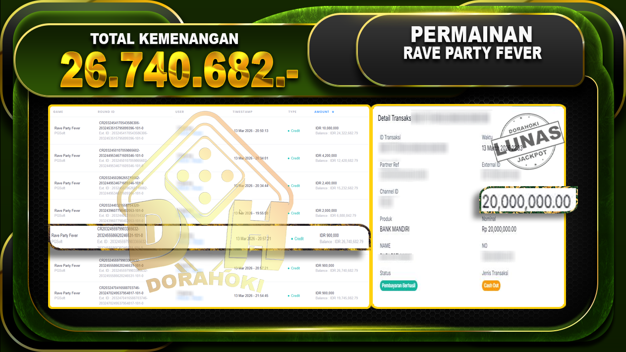 Bukti JP Rave Party Fever – Yang kami berikan ini sah dan real tanpa di rekayasa bosku dan hanya bertujuan untuk meningkatkan kepercayaan member kami dan memberikan kenyamanan saat bermain jadi bosku tidak perlu khawatir MENANG BERAPAPUN PASTI KAMI BAYAR LUNAS!!
