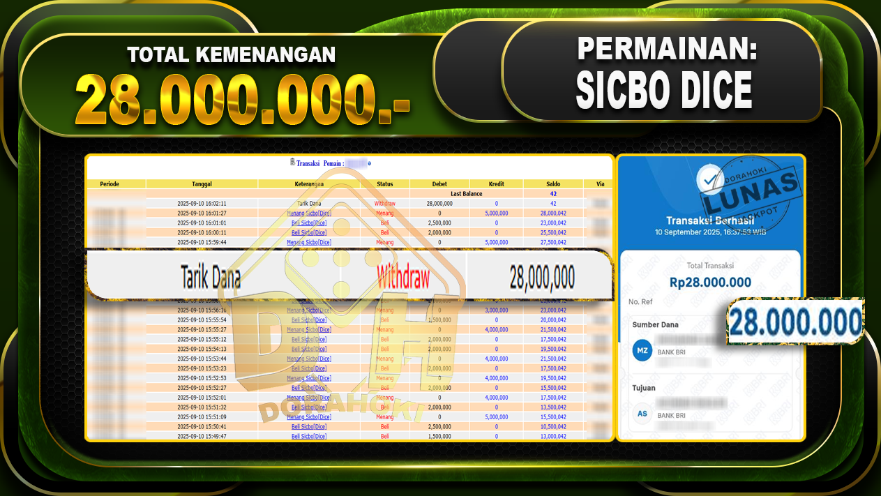 DORAHOKI NIH BOSKU! MENANG BERAPAPUN PASTI KAMI BAYAR LUNAS!!