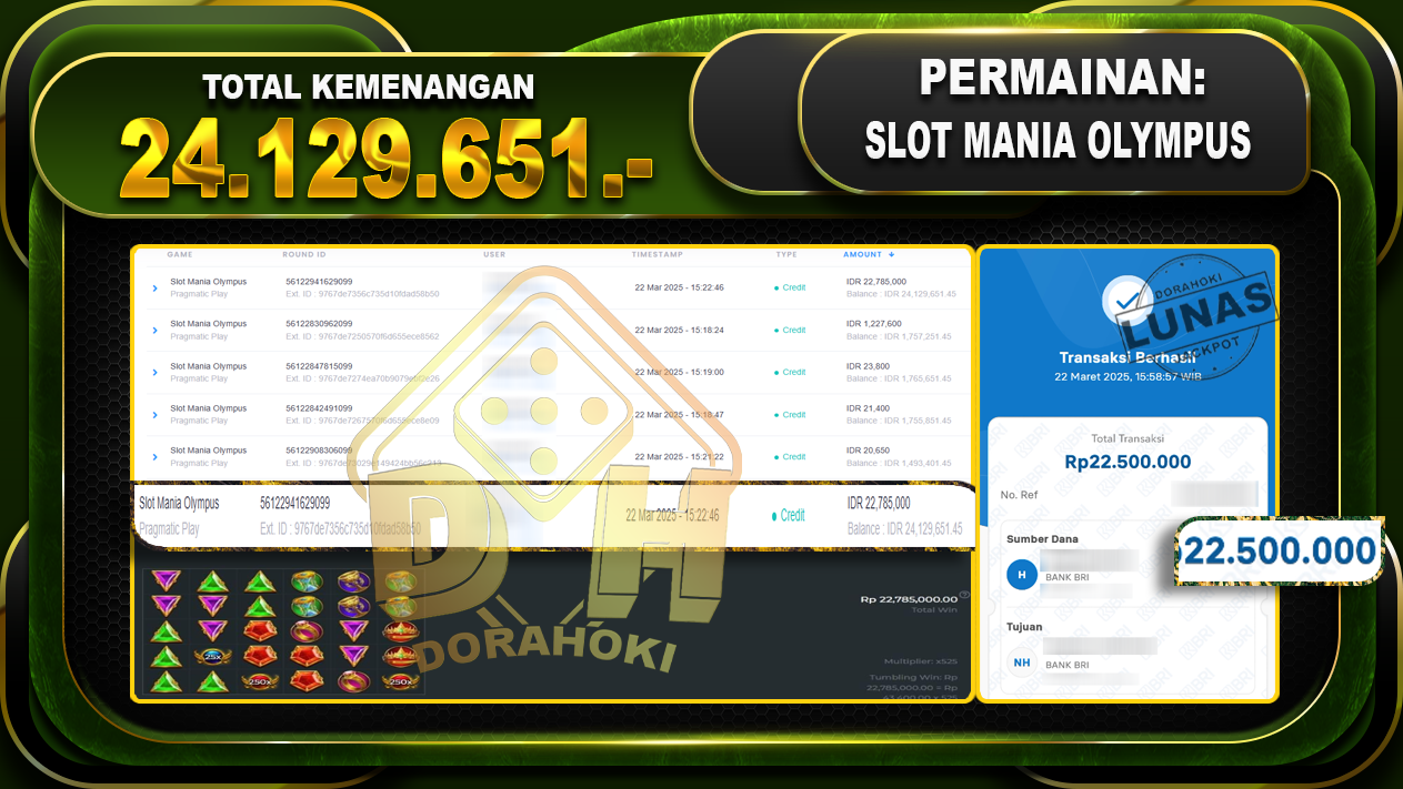 Bukti JP SLOT MANIA OLYMPUS – ucapkan selamat kepada user id Eyaxxx atas kemenangan di SLOT MANIA OLYMPUS dengan total kemenangan Rp.24.129.651,- . Yang pasti nya langsung LUNAS sesuai bukti ya bosku. Dorahoki nih bosku berapapun akan tetap kami bayar lunas ya bosku.