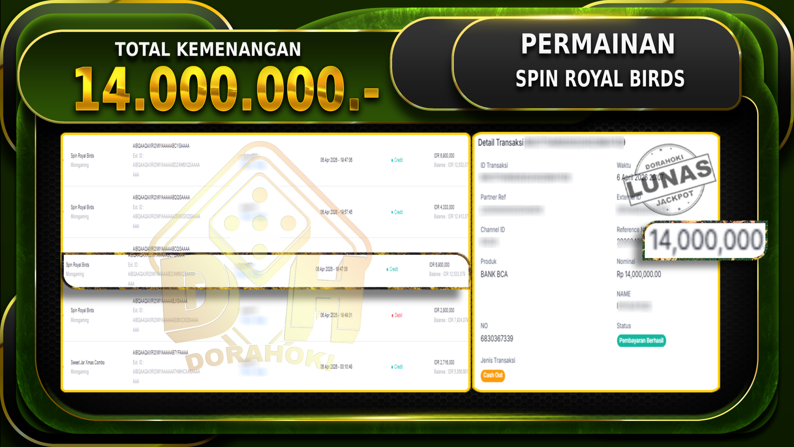 Bukti JP Spin Royal Birds – Yang kami berikan ini sah dan real tanpa di rekayasa bosku dan hanya bertujuan untuk meningkatkan kepercayaan member kami dan memberikan kenyamanan saat bermain jadi bosku tidak perlu khawatir MENANG BERAPAPUN PASTI KAMI BAYAR LUNAS!!