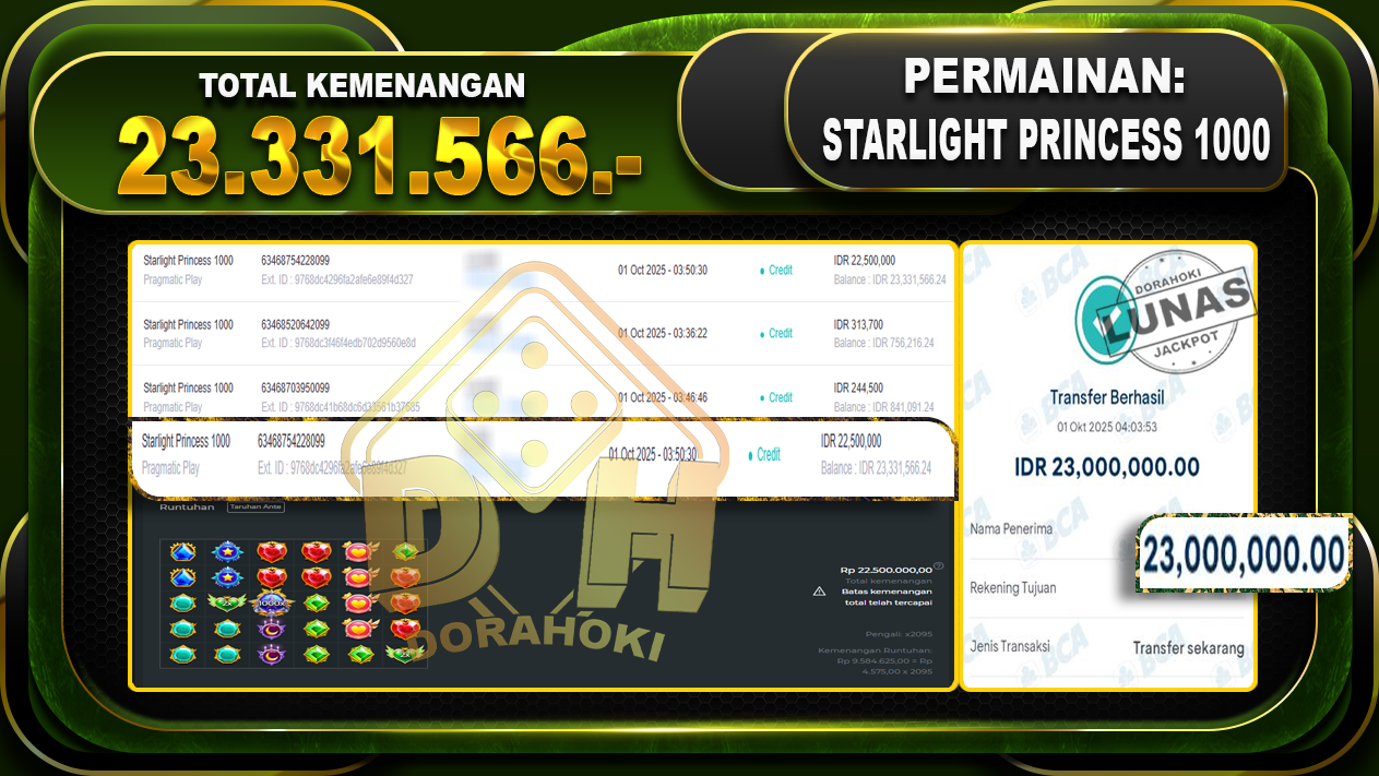 Bukti JP Starlight Princess 1000 – ucapkan selamat kepada user id juxxxxx atas kemenangan di Starlight Princess 1000 dengan total kemenangan Rp.23,331,566,- Yang pasti nya langsung LUNAS sesuai bukti ya bosku. Dorahoki nih bosku berapapun akan tetap kami bayar lunas ya bosku