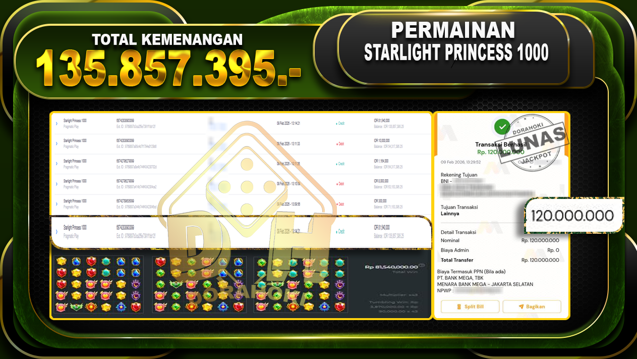 Bukti JP Starlight Princess 1000– Yang kami berikan ini sah dan real tanpa di rekayasa bosku dan hanya bertujuan untuk meningkatkan kepercayaan member kami dan memberikan kenyamanan saat bermain jadi bosku tidak perlu khawatir MENANG BERAPAPUN PASTI KAMI BAYAR LUNAS!!