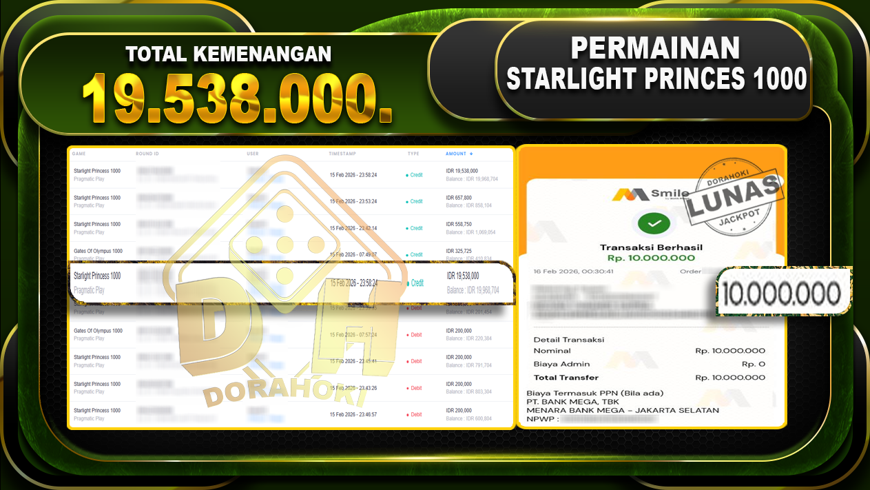 Bukti JP Starlight Princess 1000 – Selamat Kepada User ID : Cahxxxxx atas kemenangan Starlight Princess 1000 Dengan Nominal Sebesar Rp.19.538.000,- Yang pasti nya langsung LUNAS Sesuai Bukti.