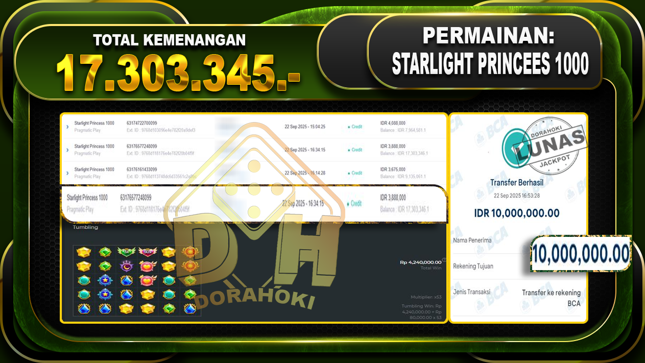 Bukti JP Starlight Princess 1000 – ucapkan selamat kepada user id Menxxxx atas kemenangan di Starlight Princess 1000 dengan total kemenangan Rp.17,303,345,- Yang pasti nya langsung LUNAS sesuai bukti ya bosku. Dorahoki nih bosku berapapun akan tetap kami bayar lunas ya bosku