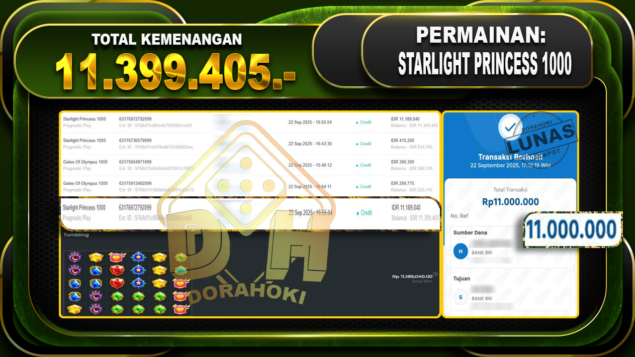 Bukti JP Starlight Princess 1000 – ucapkan selamat kepada user id Suxxx atas kemenangan di Starlight Princess 1000 dengan total kemenangan Rp.11,399,405,- Yang pasti nya langsung LUNAS sesuai bukti ya bosku. Dorahoki nih bosku berapapun akan tetap kami bayar lunas ya bosku