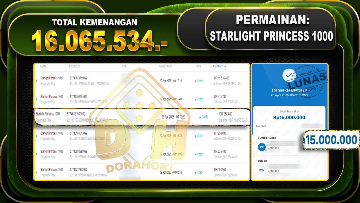 Bukti JP STARLIGHT PRINCESS 1000 – ucapkan selamat kepada user id Harxxx atas kemenangan di STARLIGHT PRINCESS 1000 dengan total kemenangan Rp.16.065.534,- . Yang pasti nya langsung LUNAS sesuai bukti ya bosku. Dorahoki nih bosku berapapun akan tetap kami bayar lunas ya bosku