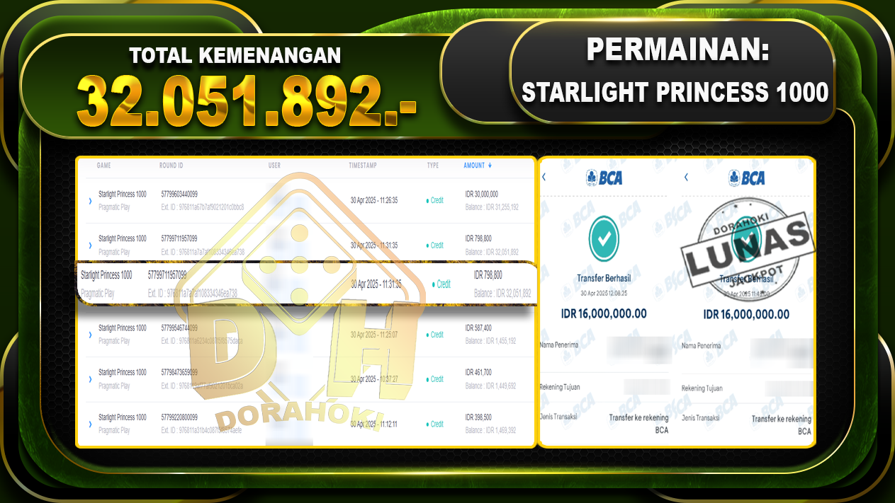Bukti JP STARLIGHT PRINCESS 1000 – ucapkan selamat kepada user id 5Mexxx atas kemenangan di STARLIGHT PRINCESS 1000 dengan total kemenangan Rp.32.051.892,- . Yang pasti nya langsung LUNAS sesuai bukti ya bosku. Dorahoki nih bosku berapapun akan tetap kami bayar lunas ya bosku
