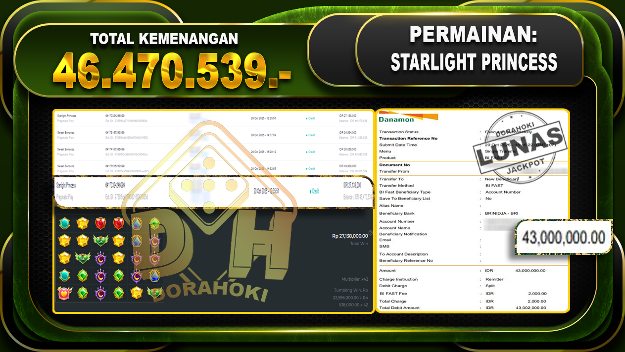 Bukti JP Starlight Princess – ucapkan selamat kepada user id alexxxxx atas kemenangan di Starlight Princess dengan total kemenangan Rp.46,470,539,- Yang pasti nya langsung LUNAS sesuai bukti ya bosku. Dorahoki nih bosku berapapun akan tetap kami bayar lunas ya bosku.
