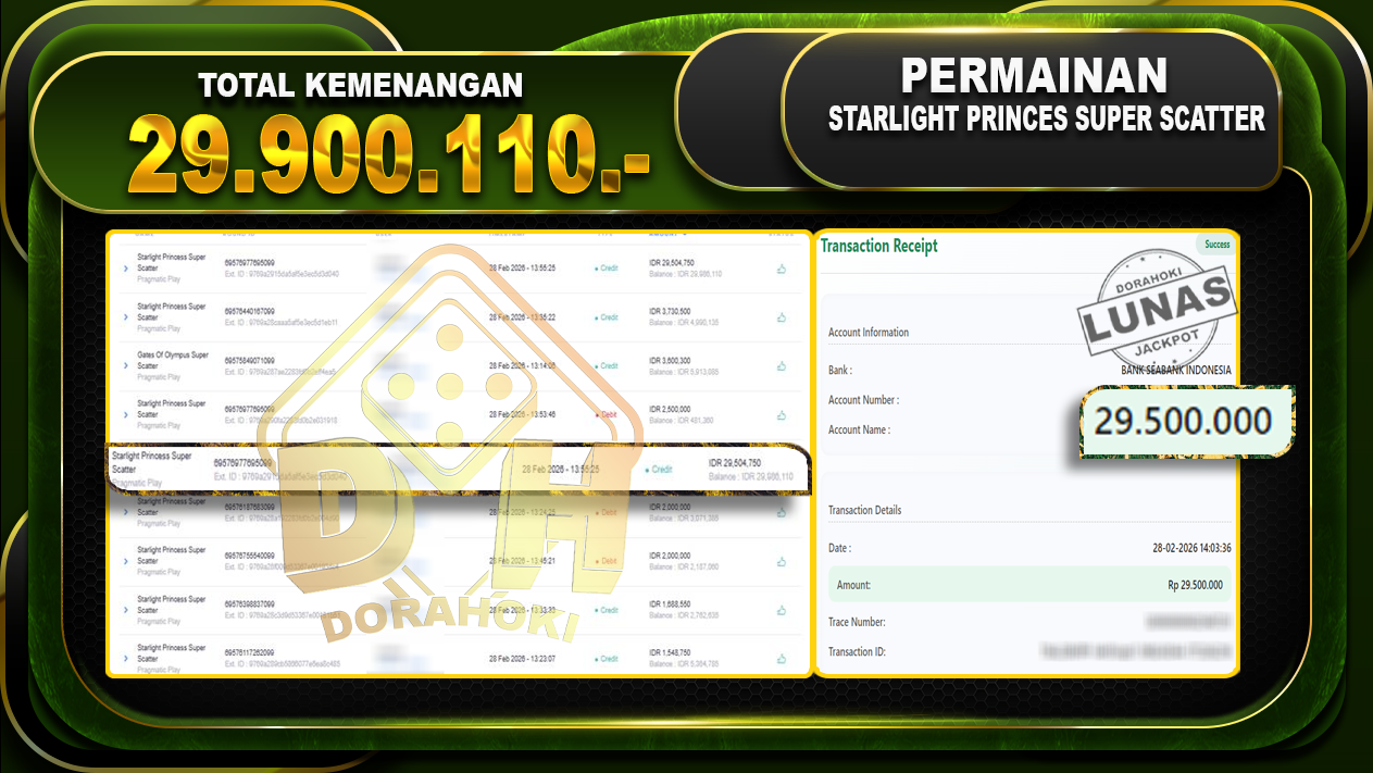 Bukti JP Starlight Princess super scatter – Selamat Kepada User ID : Babxxx atas kemenangan Starlight Princess super scatter Dengan Nominal Sebesar Rp.29.900.110,- Yang pasti nya langsung LUNAS Sesuai Bukti.