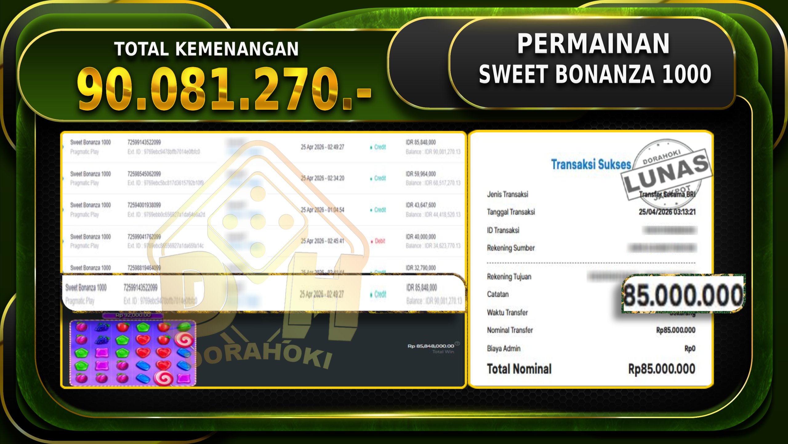 Bukti JP Sweet Bonanza 1000 Dice – Selamat Kepada User ID : Barxxx atas kemenangan Sweet Bonanza 1000 Dice Dengan Nominal Sebesar Rp.90.081.270,- Yang pasti nya langsung LUNAS Sesuai Bukti.