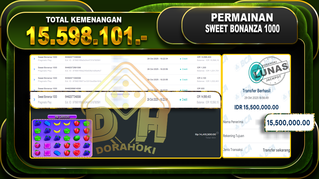 Bukti JP Sweet Bonanza 1000 – ucapkan selamat kepada user id magxxxxx atas kemenangan di Sweet Bonanza 1000 dengan total kemenangan Rp.17.516.953,- Yang pasti nya langsung LUNAS sesuai bukti ya bosku. Dorahoki nih bosku berapapun akan tetap kami bayar lunas ya bosku.