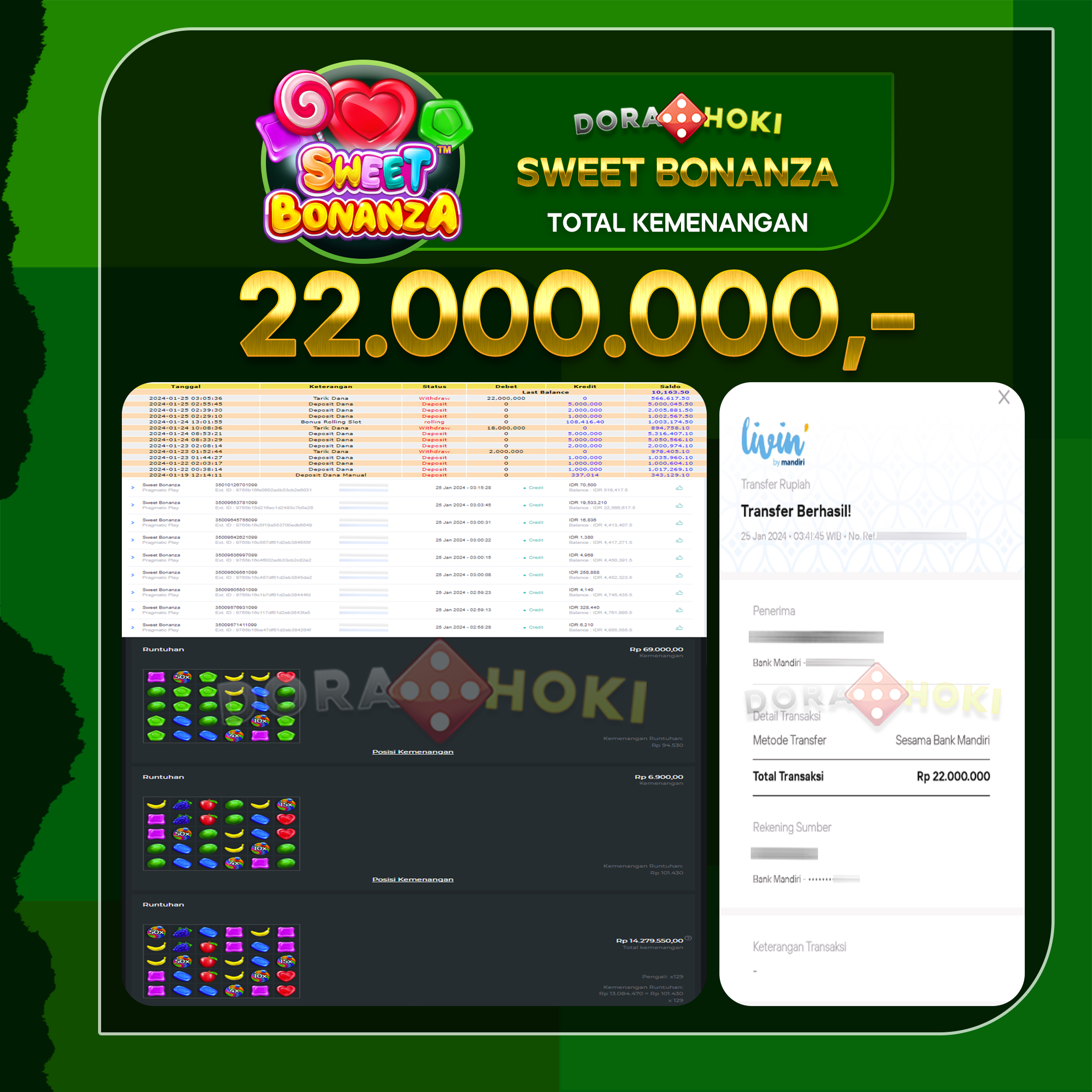 Bukti JP Sweet Bonanza – ucapkan selamat kepada user id Wahyxxx atas kemenangan di Sweet Bonanza dengan total kemenangan Rp.22,000,000,- . Yang pasti nya langsung LUNAS sesuai bukti ya bosku. Dorahoki nih bosku berapapun akan tetap kami bayar lunas ya bosku.