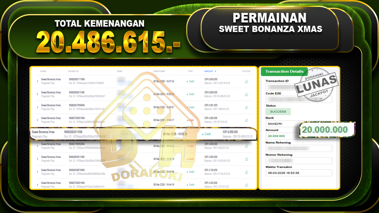 SWEET BONANZA XMAS – DORAHOKI 06 Maret 2026