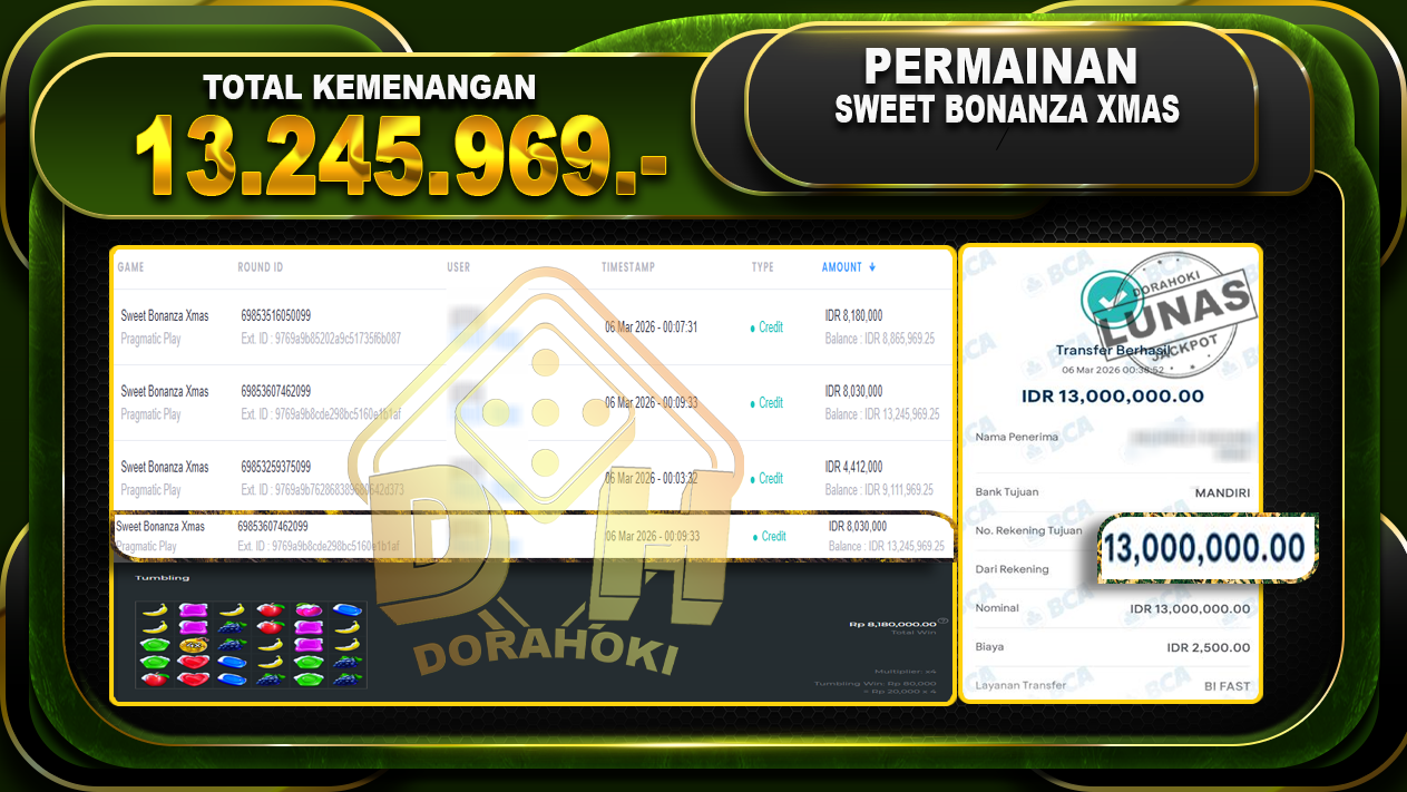 SWEET BONANZA XMAS – DORAHOKI 06 Maret 2026