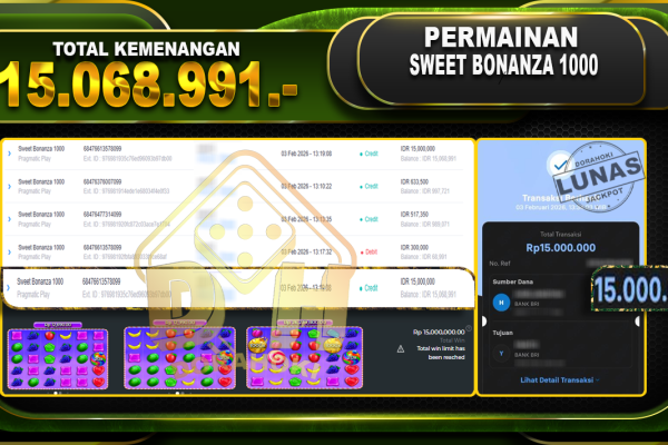 Bukti JP Wild Bounty Showdown – Selamat Kepada User id bawxxxxx atas kemenangan Wild Bounty Showdown Dengan Nominal Sebesar Rp.11.614.681,- Yang pasti nya langsung LUNAS Sesuai Bukti. Kemenangan Berapapun Situs DoraHoki Akan Membayar Lunas yah