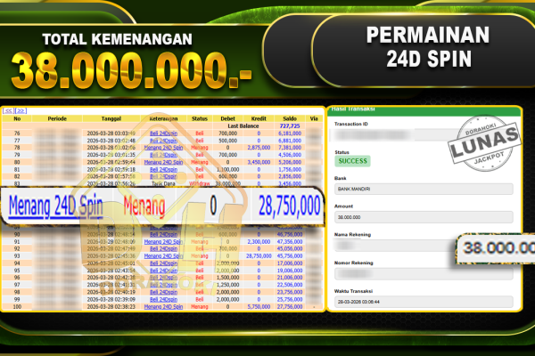 Bukti JP Livegames 24D Spin – ucapkan selamat kepada user id Wikxxxxx atas kemenangan di Livegames 24D Spin dengan total kemenangan Rp.38.000.000,- . Yang pasti nya langsung LUNAS Sesuai Bukti. Kemenangan Berapapun Situs DoraHoki Akan Membayar Lunas ya Kami mengucapkan Terima Kasih telah mempercayakan DORAHOKI sebagai Bandar Online pilihan dalam bermain judi online. Semoga bosku bisa tetap…