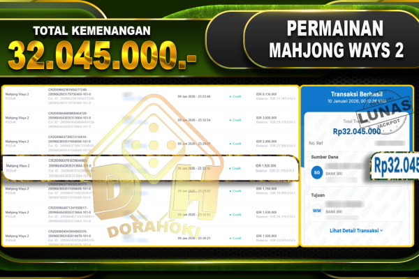 Bukti JP Mahjong Ways 2 – ucapkan selamat kepada user id sakxxxx atas kemenangan di Mahjong Ways 2 dengan total kemenangan Rp.32.045.000,- Yang pasti nya langsung LUNAS sesuai bukti ya bosku. Dorahoki nih bosku berapapun akan tetap kami bayar lunas ya bosku