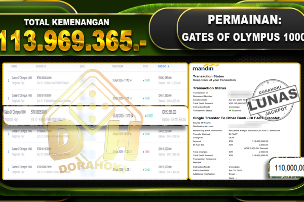 Bukti JP GATES OF OLYMPUS 1000 – ucapkan selamat kepada user id Prixxx atas kemenangan di GATES OF OLYMPUS 1000 dengan total kemenangan Rp.113.969.365,- . Yang pasti nya langsung LUNAS sesuai bukti ya bosku. Dorahoki nih bosku berapapun akan tetap kami bayar lunas ya bosku.