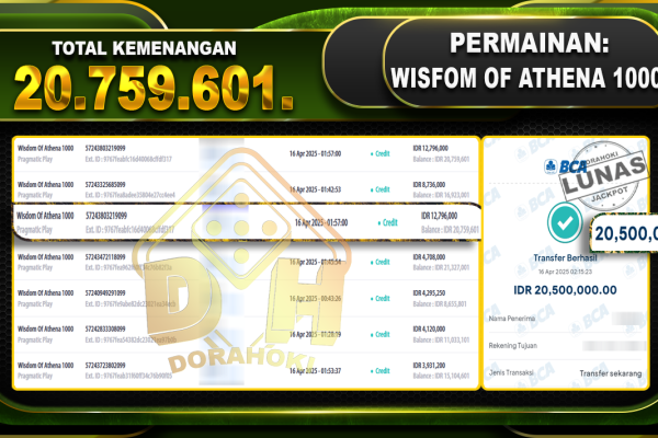 Bukti JP PP LIVE MEGAWHEEL – ucapkan selamat kepada user id Jojxxx atas kemenangan di PP LIVE MEGAWHEEL dengan total kemenangan Rp.10.200.382,- . Yang pasti nya langsung LUNAS sesuai bukti ya bosku. Dorahoki nih bosku berapapun akan tetap kami bayar lunas ya bosku. Kami mengucapkan Terima Kasih telah mempercayakan DORAHOKI sebagai Bandar Online pilihan dalam…