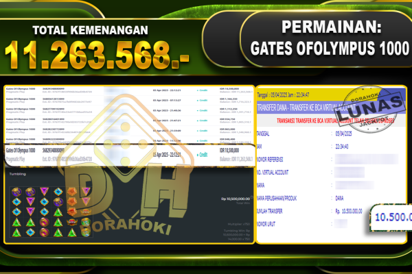 Bukti JP GATES OF OLYMPUS 1000 – ucapkan selamat kepada user id Deuxxx atas kemenangan di GATES OF OLYMPUS 1000 dengan total kemenangan Rp.11.263.568,- . Yang pasti nya langsung LUNAS sesuai bukti ya bosku. Dorahoki nih bosku berapapun akan tetap kami bayar lunas ya bosku. Kami mengucapkan Terima Kasih telah mempercayakan DORAHOKI sebagai Bandar Online pilihan…
