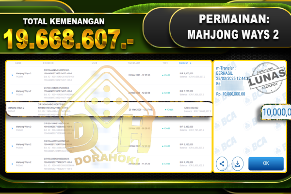 Bukti JP TOGEL SYDNEY – ucapkan selamat kepada user id Gapxxx atas kemenangan di TOGEL SYDNEY dengan total kemenangan Rp.20.950.000,- . Yang pasti nya langsung LUNAS sesuai bukti ya bosku. Dorahoki nih bosku berapapun akan tetap kami bayar lunas ya bosku. Kami mengucapkan Terima Kasih telah mempercayakan DORAHOKI sebagai Bandar Online pilihan dalam bermain judi…