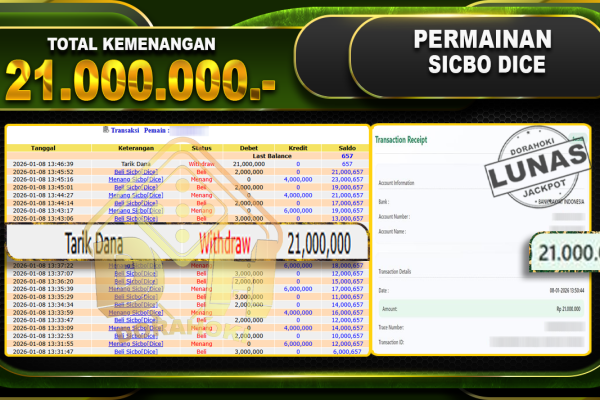 Bukti JP ROULETTE GAMES – ucapkan selamat kepada user id bajxxxxx atas kemenangan di  ROULETTE GAMES  dengan total kemenangan Rp.34.475.000,- . Yang pasti nya langsung LUNAS sesuai bukti ya bosku. Dorahoki nih bosku berapapun akan tetap kami bayar lunas ya bosku. Kami mengucapkan Terima Kasih telah mempercayakan DORAHOKI sebagai Bandar Online pilihan dalam bermain judi online….