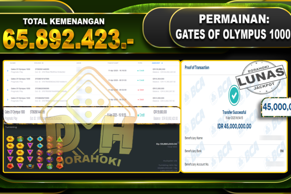Bukti JP GATES OF OLYMPUS 1000 – ucapkan selamat kepada user id Jitxxx atas kemenangan di GATES OF OLYMPUS 1000 dengan total kemenangan Rp.65.892.423,- . Yang pasti nya langsung LUNAS sesuai bukti ya bosku. Dorahoki nih bosku berapapun akan tetap kami bayar lunas ya bosku. Kami mengucapkan Terima Kasih telah mempercayakan DORAHOKI sebagai Bandar Online pilihan…