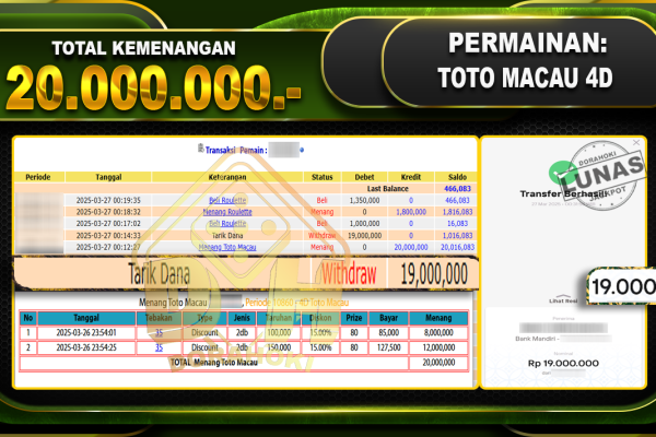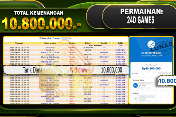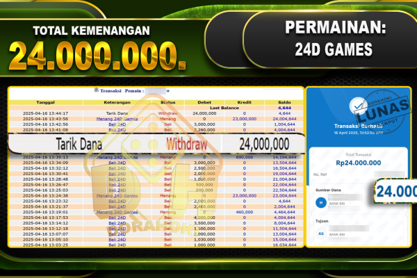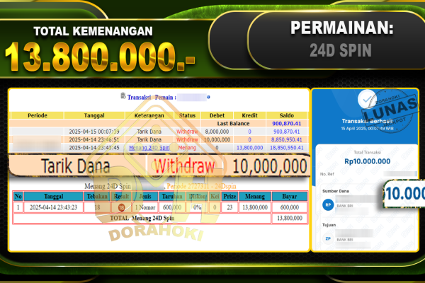 Bukti JP 24D SPIN- ucapkan selamat kepada user id Jemxxx atas kemenangan di 24D SPIN dengan total kemenangan Rp.24.000.000,- . Yang pasti nya langsung LUNAS sesuai bukti ya bosku. Dorahoki nih bosku berapapun akan tetap kami bayar lunas ya bosku. Kami mengucapkan Terima Kasih telah mempercayakan DORAHOKI sebagai Bandar Online pilihan dalam bermain judi online. Semoga…