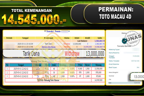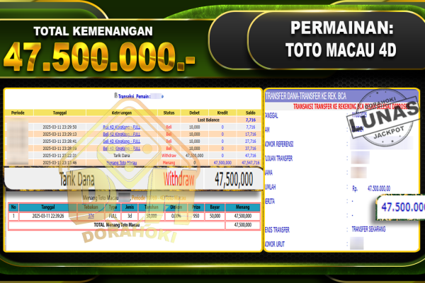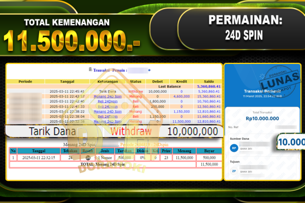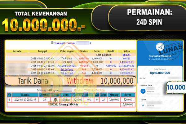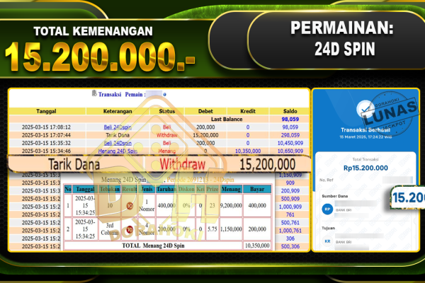 Bukti JP 24Dspin – ucapkan selamat kepada user id Kalxxx atas kemenangan di 24Dspin dengan total kemenangan Rp.15.200.000,- . Yang pasti nya langsung LUNAS sesuai bukti ya bosku. Dorahoki nih bosku berapapun akan tetap kami bayar lunas ya bosku. Kami mengucapkan Terima Kasih telah mempercayakan DORAHOKI sebagai Bandar Online pilihan dalam bermain judi online. Semoga bosku…
