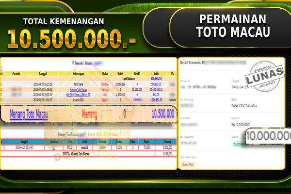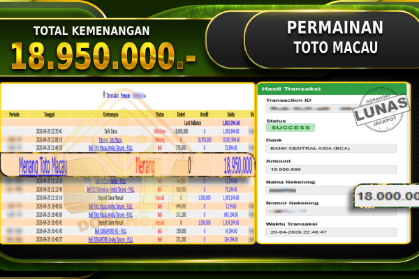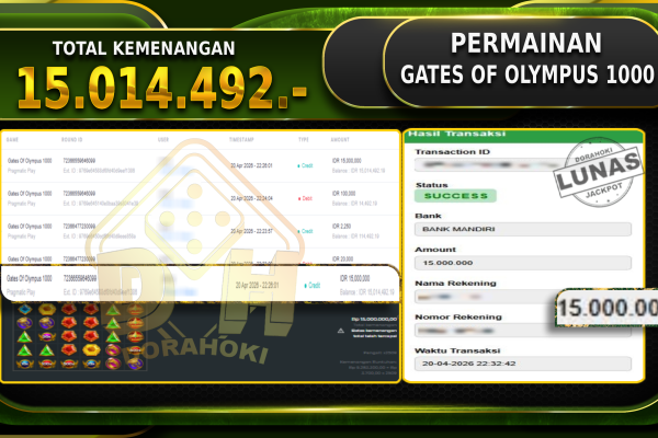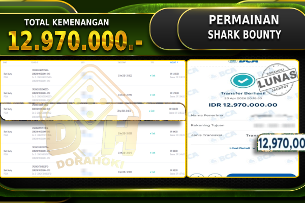 Bukti JP SHARK BOUNTY – Selamat Kepada User ID : Warxxx atas kemenangan SHARK BOUNTY Dengan Nominal Sebesar Rp. 12.970.000,- . Yang pasti nya langsung LUNAS Sesuai Bukti. Kemenangan Berapapun Situs DoraHoki Akan Membayar Lunas ya
