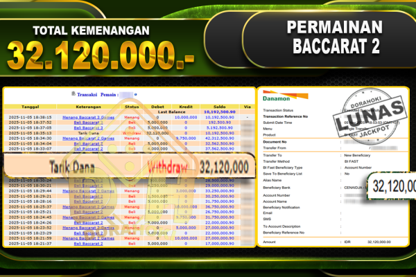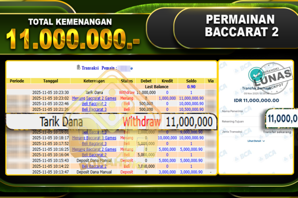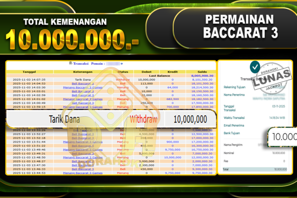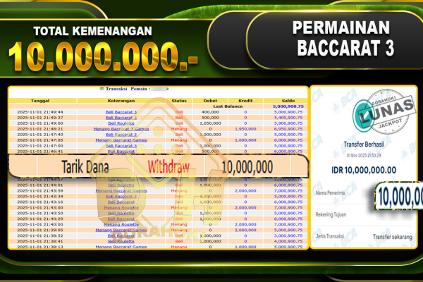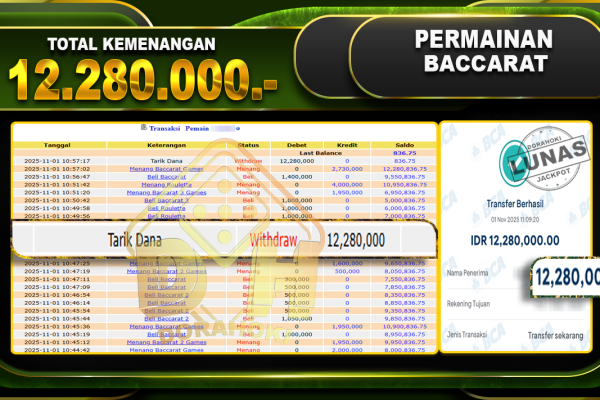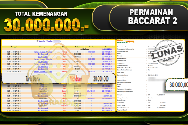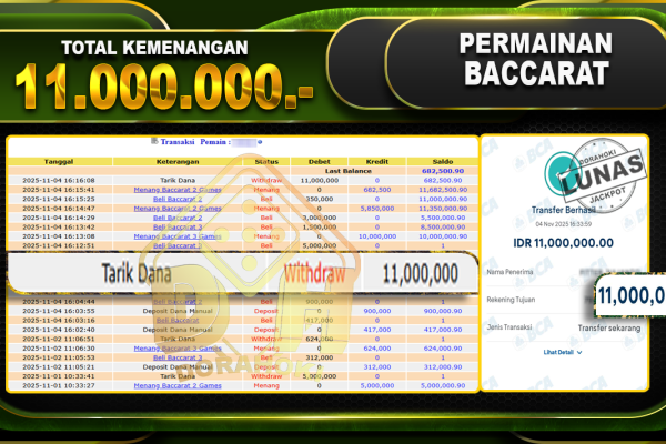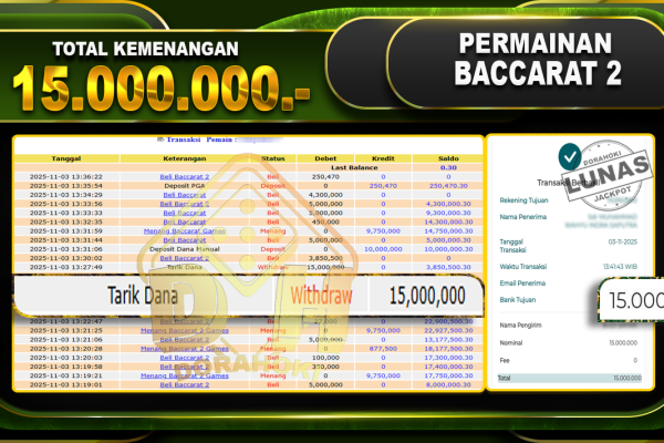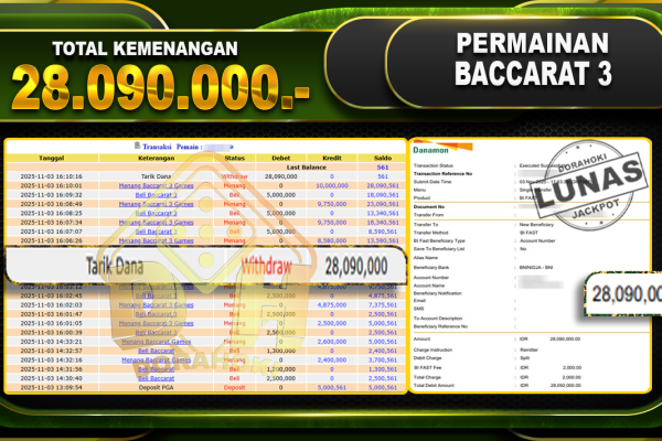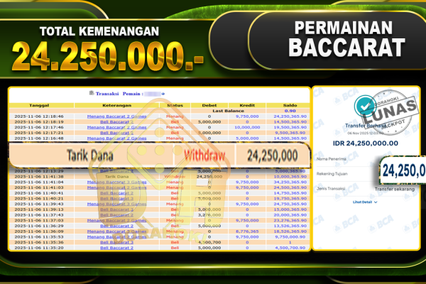 Bukti JP BACCARAT – ucapkan selamat kepada user id olsxxx atas kemenangan di BACCARAT dengan total kemenangan Rp.24.250.000,- . Yang pasti nya langsung LUNAS sesuai bukti ya bosku. Dorahoki nih bosku berapapun akan tetap kami bayar lunas ya bosku.