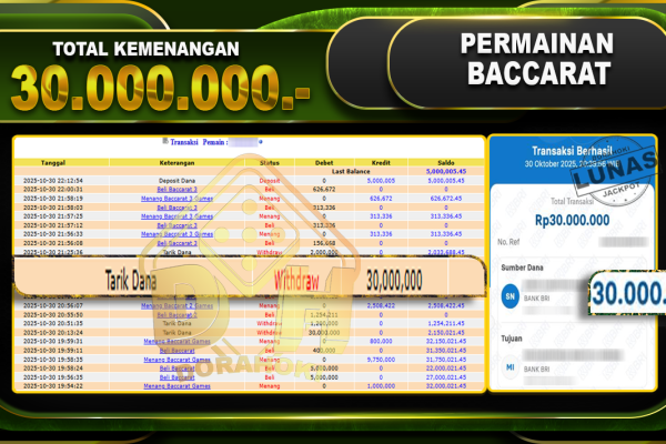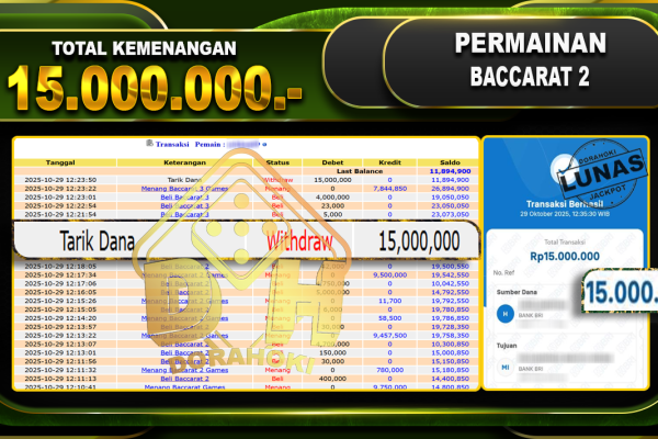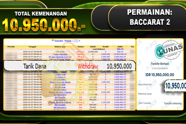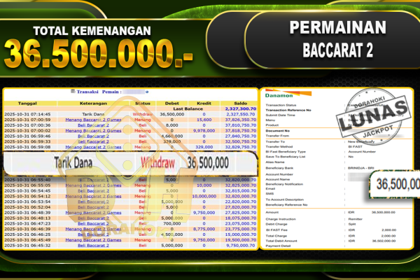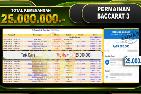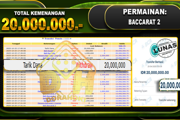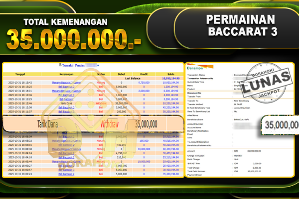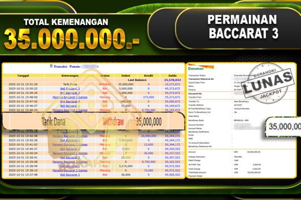 Bukti JP BACCARAT – ucapkan selamat kepada user id arkxxxxx atas kemenangan di BACCARAT dengan total kemenangan Rp.35.000.000,- . Yang pasti nya langsung LUNAS sesuai bukti ya bosku. Dorahoki nih bosku berapapun akan tetap kami bayar lunas ya bosku.