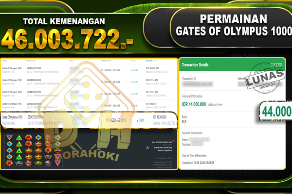Bukti JP Gates Of Olympus 1000 – Selamat Kepada User ID : Cahxxx atas kemenangan Gates Of Olympus 1000 Dengan Nominal Sebesar Rp 46.003.722,- . Yang pasti nya langsung LUNAS Sesuai Bukti. Kemenangan Berapapun Situs DoraHoki Akan Membayar Lunas yah Kami mengucapkan Terima Kasih telah mempercayakan DORAHOKI sebagai Bandar Online pilihan dalam bermain judi online….