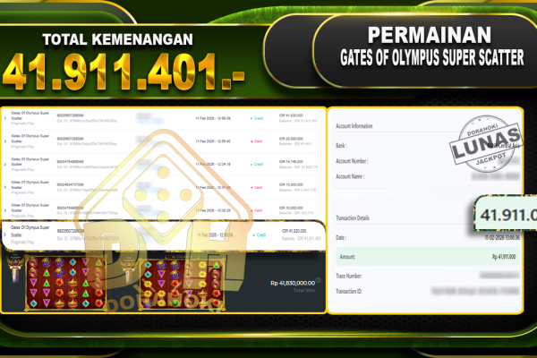Bukti JP Gates Of Olympus Super Scatter – Selamat Kepada user ID : anxxxx  atas kemenangan Gates Of Olympus Super Scatter Dengan Nominal Sebesar Rp.41.911.401,- Yang pasti nya langsung LUNAS Sesuai Bukti. Kemenangan Berapapun Situs DoraHoki Akan Membayar Lunas yah