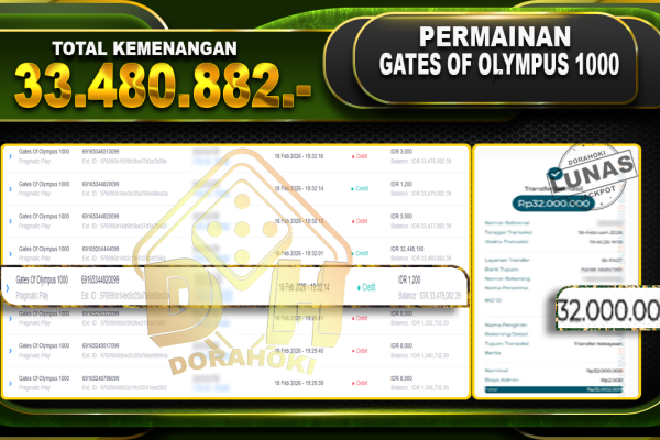 Bukti JP Gates Of Olympus 1000 – Selamat Kepada User ID : Dorxxx atas kemenangan Gates Of Olympus 1000 Dengan Nominal Sebesar Rp 33.480.882,- . Yang pasti nya langsung LUNAS Sesuai Bukti. Kemenangan Berapapun Situs DoraHoki Akan Membayar Lunas yah Kami mengucapkan Terima Kasih telah mempercayakan DORAHOKI sebagai Bandar Online pilihan dalam bermain judi online….