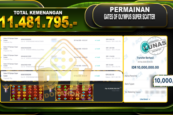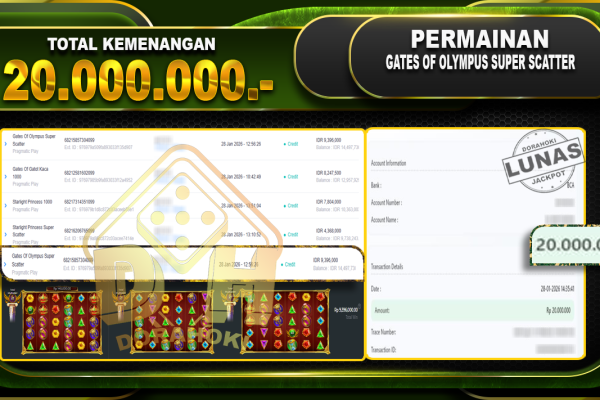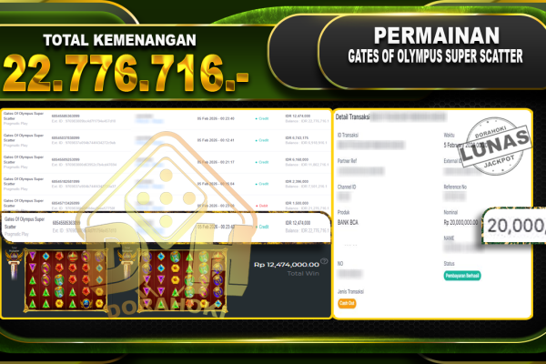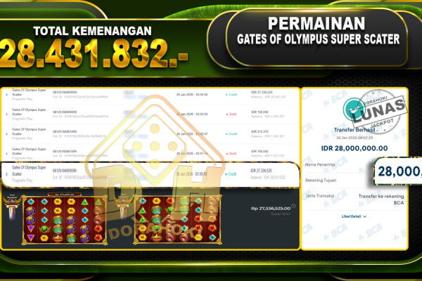 Bukti JP Gates Of Olympus Super Scatter – Selamat Kepada user ID : adexxxxx atas kemenangan Gates Of Olympus Super Scatter Dengan Nominal Sebesar Rp.27.789.610,- Yang pasti nya langsung LUNAS Sesuai Bukti. Kemenangan Berapapun Situs DoraHoki Akan Membayar Lunas yah