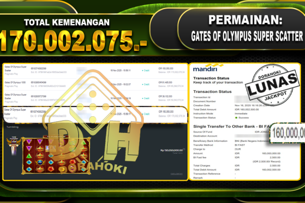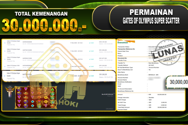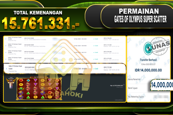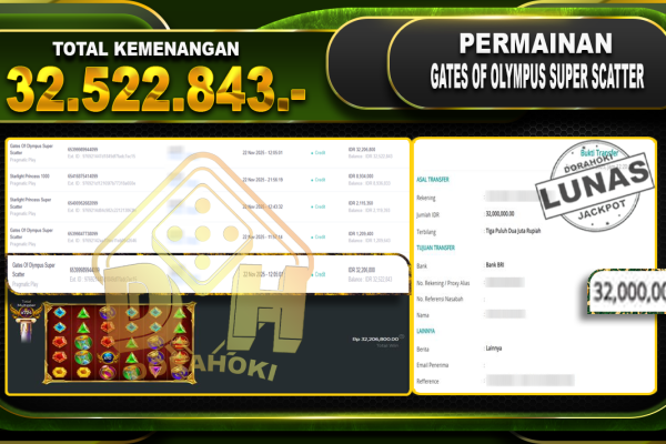 Bukti JP Gates Of Olympus Super Scatter – ucapkan selamat kepada user id anixxxxx atas kemenangan di Gates Of Olympus Super Scatter dengan total kemenangan Rp.32.522.843,- Yang pasti nya langsung LUNAS sesuai bukti ya bosku. Dorahoki nih bosku berapapun akan tetap kami bayar lunas ya bosku