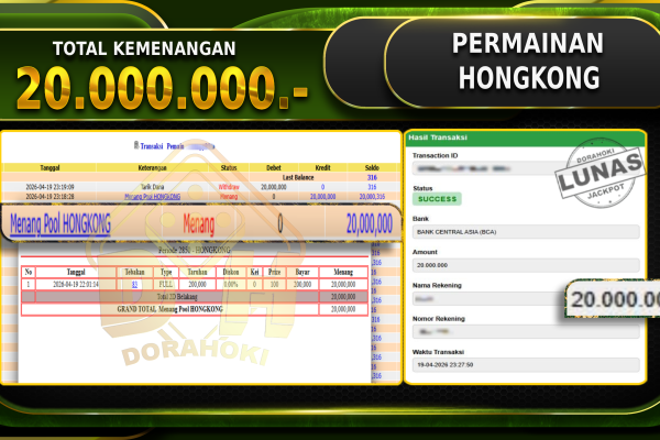 Bukti JP TOGEL SYDNEY – Selamat Kepada User ID : Harxxx atas kemenangan TOGEL SYDNEY Dengan Nominal Sebesar Rp 18.000.000,- . Yang pasti nya langsung LUNAS Sesuai Bukti. Kemenangan Berapapun Situs DoraHoki Akan Membayar Lunas ya Kami mengucapkan Terima Kasih telah mempercayakan DORAHOKI sebagai Bandar Online pilihan dalam bermain judi online. Semoga bosku bisa tetap…