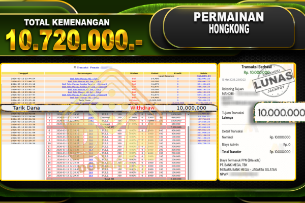 Bukti JP TOGEL HONGKONG – Selamat Kepada User ID: Lasxxx atas kemenangan TOGEL HONGKONG Dengan Nominal Sebesar Rp 10.720.000,- . Yang pasti nya langsung LUNAS Sesuai Bukti. Kemenangan Berapapun Situs DoraHoki Akan Membayar Lunas ya Kami mengucapkan Terima Kasih telah mempercayakan DORAHOKI sebagai Bandar Online pilihan dalam bermain judi online. Semoga bosku bisa tetap bermain…