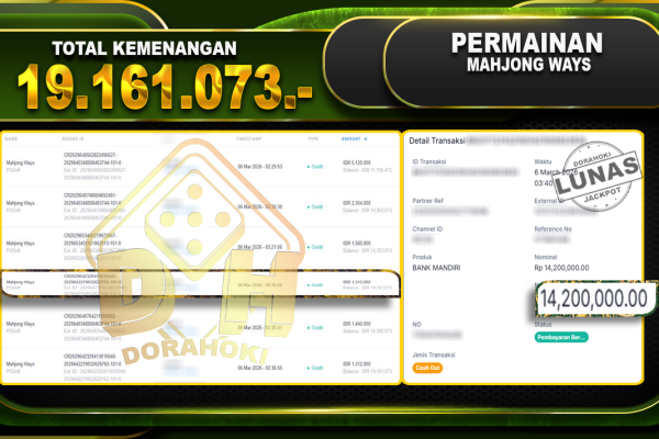 Bukti JP Mahjong Ways  – Selamat Kepada User id Harxxx atas kemenangan Mahjong Ways Dengan Nominal Sebesar Rp 19.161.073,- . Yang pasti nya langsung LUNAS Sesuai Bukti. Kemenangan Berapapun Situs DoraHoki Akan Membayar Lunas ya Kami mengucapkan Terima Kasih telah mempercayakan DORAHOKI sebagai Bandar Online pilihan dalam bermain judi online. Semoga bosku bisa tetap bermain…