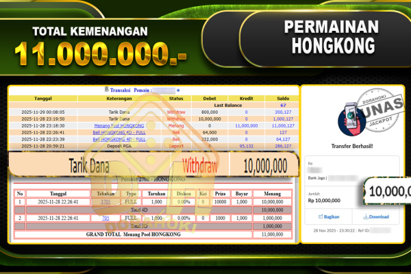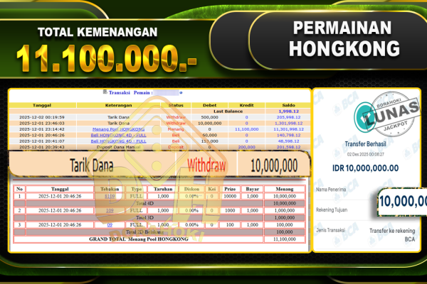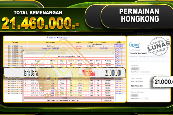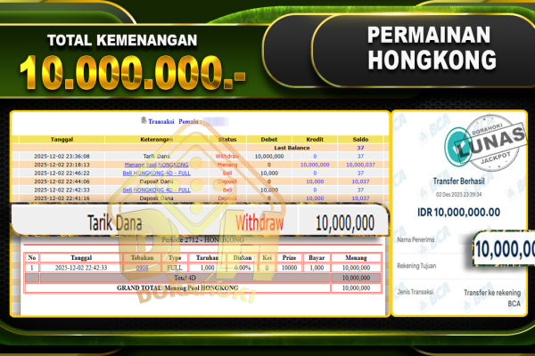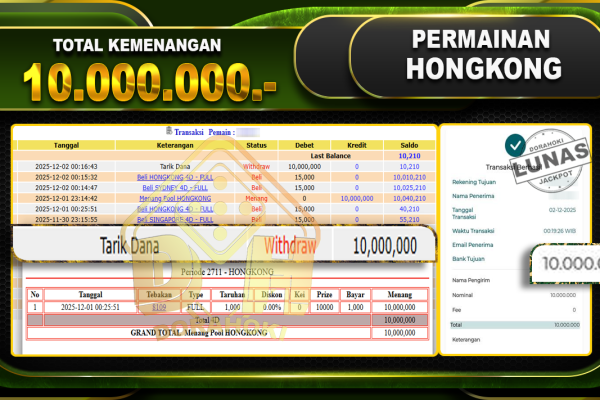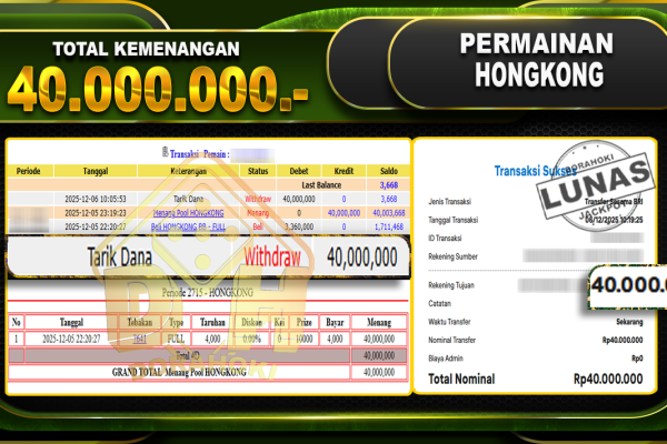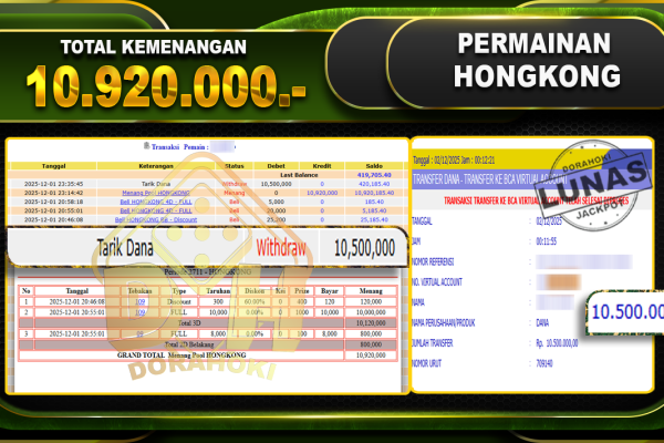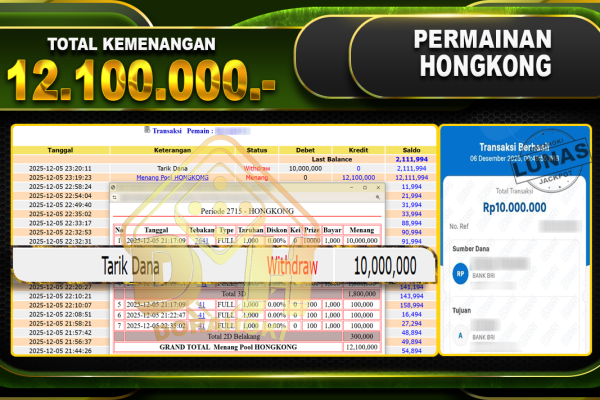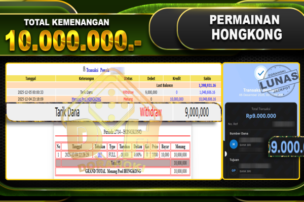 Bukti JP TOGEL HONGKONG – ucapkan selamat kepada user id hisxxxxx atas kemenangan di TOGEL HONGKONG dengan total kemenangan Rp.12,100,000,- . Yang pasti nya langsung LUNAS sesuai bukti ya bosku. Dorahoki nih bosku berapapun akan tetap kami bayar lunas ya bosku. Kami mengucapkan Terima Kasih telah mempercayakan DORAHOKI sebagai Bandar Online pilihan dalam bermain judi online….