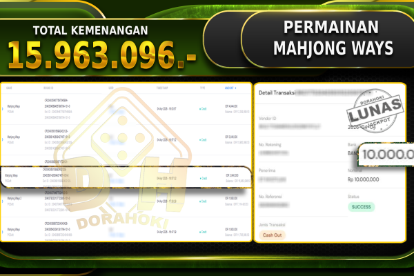 Bukti JP Mahjong Ways  – Selamat Kepada User id Tijxxx atas kemenangan Mahjong Ways Dengan Nominal Sebesar Rp 15.963.096,- . Yang pasti nya langsung LUNAS Sesuai Bukti. Kemenangan Berapapun Situs DoraHoki Akan Membayar Lunas ya Kami mengucapkan Terima Kasih telah mempercayakan DORAHOKI sebagai Bandar Online pilihan dalam bermain judi online. Semoga bosku bisa tetap bermain…