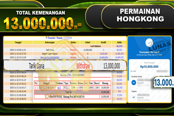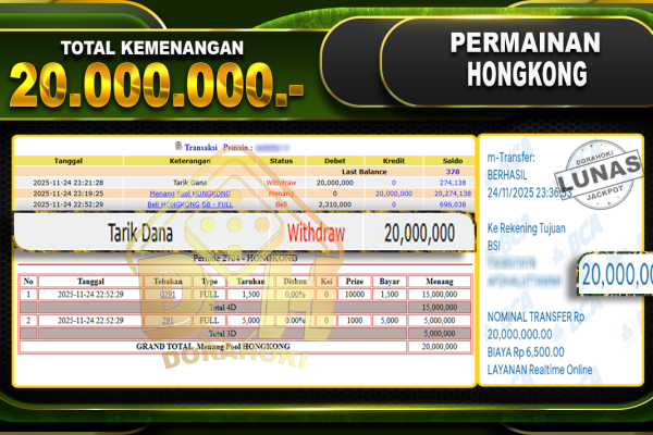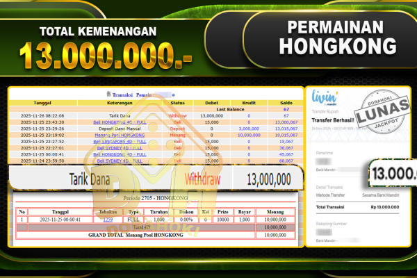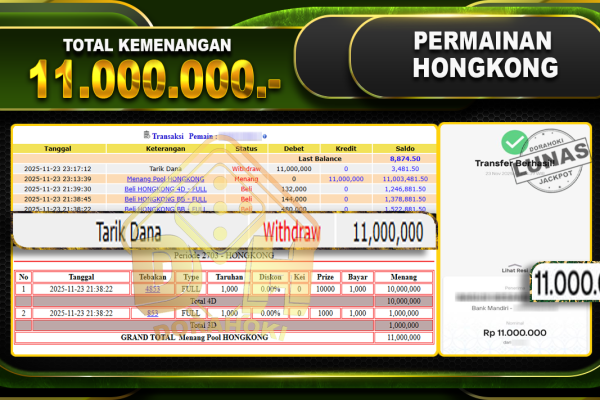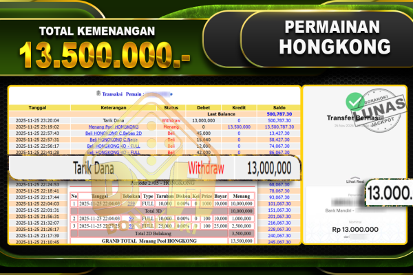 Bukti JP TOGEL HONGKONG – ucapkan selamat kepada user id jamxxxxx atas kemenangan di TOGEL HONGKONG dengan total kemenangan Rp.11,200,000,- . Yang pasti nya langsung LUNAS sesuai bukti ya bosku. Dorahoki nih bosku berapapun akan tetap kami bayar lunas ya bosku. Kami mengucapkan Terima Kasih telah mempercayakan DORAHOKI sebagai Bandar Online pilihan dalam bermain judi online….