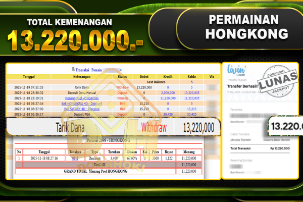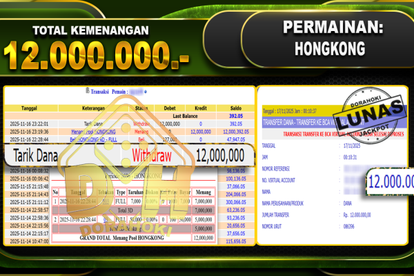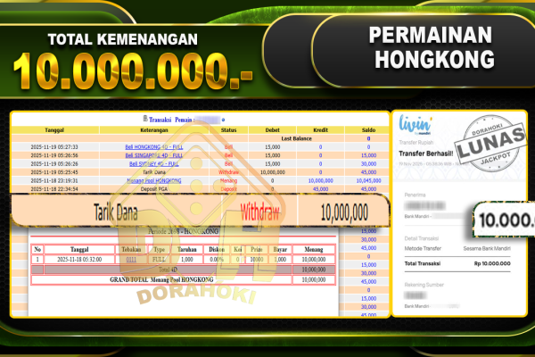 Bukti JP TOGEL HONGKONG – ucapkan selamat kepada user id afrxxxxx atas kemenangan di TOGEL HONGKONG dengan total kemenangan Rp.80,000,000,- . Yang pasti nya langsung LUNAS sesuai bukti ya bosku. Dorahoki nih bosku berapapun akan tetap kami bayar lunas ya bosku. Kami mengucapkan Terima Kasih telah mempercayakan DORAHOKI sebagai Bandar Online pilihan dalam bermain judi online….