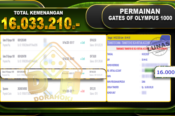 Bukti JP Gates Of Olympus 1000 – Selamat Kepada User ID : deyxxx atas kemenangan Gates Of Olympus 1000 Dengan Nominal Sebesar Rp 16.033.210,- . Yang pasti nya langsung LUNAS Sesuai Bukti. Kemenangan Berapapun Situs DoraHoki Akan Membayar Lunas yah Kami mengucapkan Terima Kasih telah mempercayakan DORAHOKI sebagai Bandar Online pilihan dalam bermain judi online….