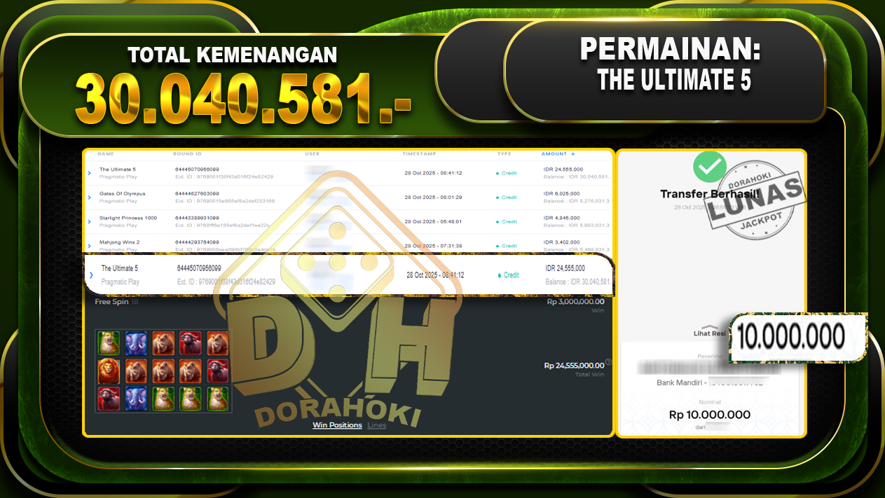 Bukti JP The Ultimate 5 – Yang kami berikan ini sah dan real tanpa di rekayasa bosku dan hanya bertujuan untuk meningkatkan kepercayaan member kami dan memberikan kenyamanan saat bermain jadi bosku tidak perlu khawatir MENANG BERAPAPUN PASTI KAMI BAYAR LUNAS!!